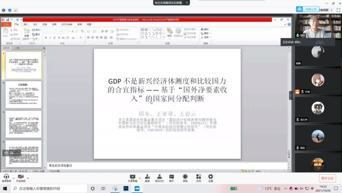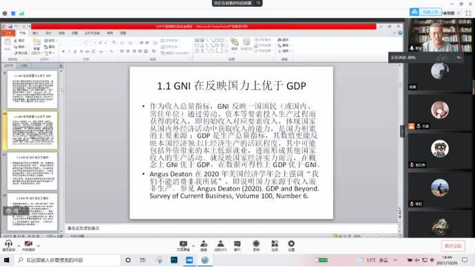 2021年10月26日下午2点我院特邀江西财经大学讲席教授邱东老师做线上学术报告,报告由学院院长王纯杰老师主持,学院部分老师、全体研究生参加了本次线上学术报告会。