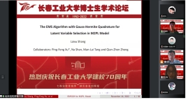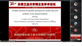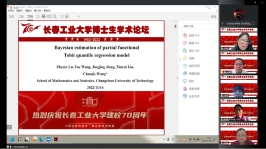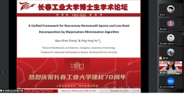 (通讯员:关迪)为庆祝学校建校70周年,2022年11月16日上午8:30,由研究生院、学科办、科研处主办,数学与统计学院承办的“校庆博士生学术论坛系列学术活动——澳门网投官方网站分论坛”在腾讯会议线上举行,分论坛特邀东北师范大学郑术蓉教授、吉林大学朱复康教授、东北师范大学徐平峰教授、南京审计大学吕绍高教授为18名博士研究生的报告做点评。澳门网投官网副校长林洁琼、校长江学者讲座教授宋心远、校学术委员会副主任董小刚、大数据科学院院长兼学科建设办公室副主任秦喜文、研究生院副院长李元、研究生院副院长高亮、澳门网投官方网站院长王纯杰、副院长李纯净、统计系主任杨凯、统计系书记袁晓惠、应用数学系杜润梅、应用数学系书记王昭及全院师生参加了分论坛开幕式,会议由统计系主任杨凯主持。