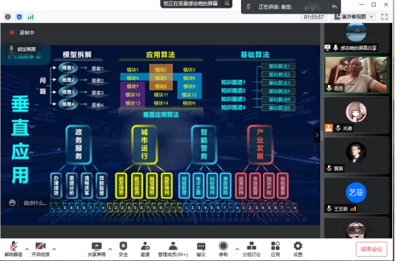 报告中,袁董事长通过零点有数公司的实际例子,生动形象地向我们讲解了MEW的相关概念与研究内容。袁董事长还介绍了该公司有关城市管理相关的项目案例,通过MEW方法将算法脑核与城市数据高度拟合。利用这种方法解决城市应用层面的问题,例如:城势要情、事项分析、主体分析、风险雷达和联勤智慧问题,为城市管理提供了新的解决方案。