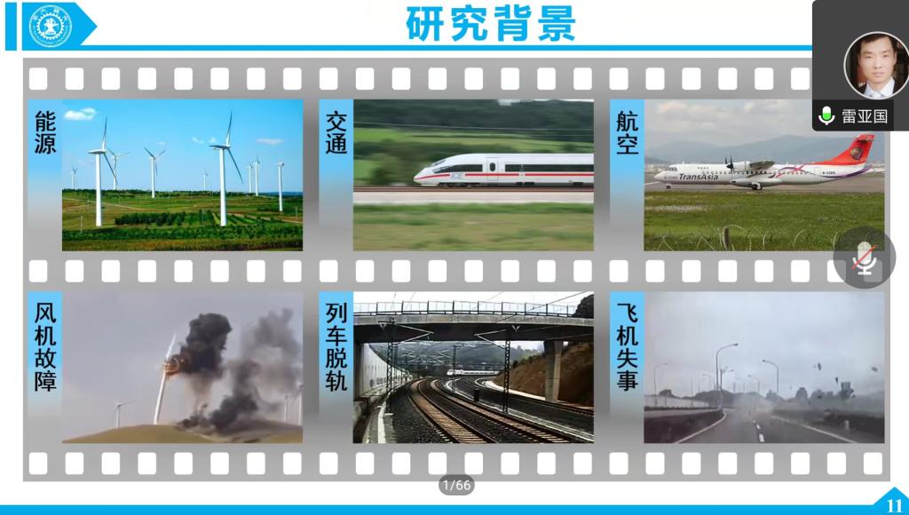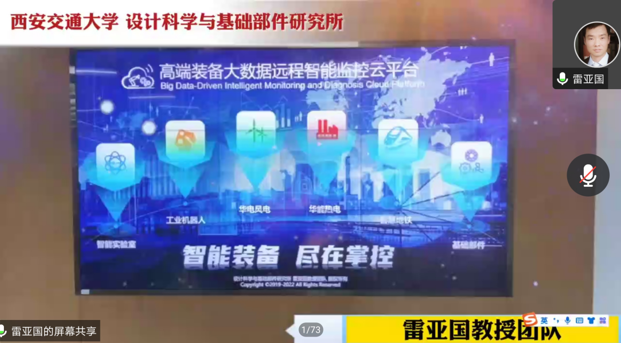 在研究背景与理论进展的讲授中,雷教授首先讲解了机械装备的生命周期——运维,接着讲解了研究背景、研究领域、一般步骤、研究方向与特色以及参加主持的国家级项目,其次讲解了大数据驱动的智能诊断,从研究动机面临挑战,研究工作等多角度对其进行详细的介绍讲解。