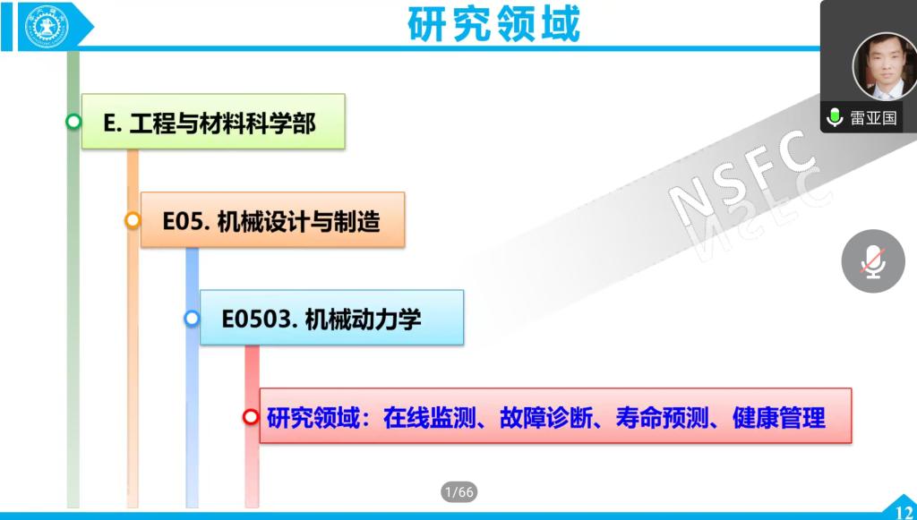 雷亚国简介:西安交通大学教授、博士生导师;美国机械工程师协会会士(ASME Fellow) 、英国工程技术学会会士(IET Fe1low)、国际工程资产管理协会会士(ISEAM Fe1low)、科睿唯安全球高被引科学家(2019--2022)、国家重点研发项目首席科学家(2项)、“三秦学者”全国一流创新团队带头人。现担任中国机械工程学会工业大数据与智能系统分会副主任委员、IEEE Transactions on Industrial Electronics、Mechanical Systems and Signa1 Processing等本领域著名期刊副主编。长期从事机械系统建模与动态信号处理、大数据智能故障诊断与寿命预测、机械状态健康监测与智能维护等方面的研究工作。研发的智能诊断系统在智能制造、能源电力、交適运输等领域得到广泛应用。曾获国家技术发明二等奖、中国青年科技奖、教育部自然科学一等奖、教育部青年科学奖、陕西省自然科学一等奖、霍英东教育基金会青年教师奖、庆祝中华人民共和国成立70周年纪念章。