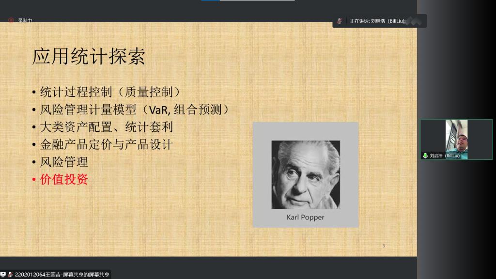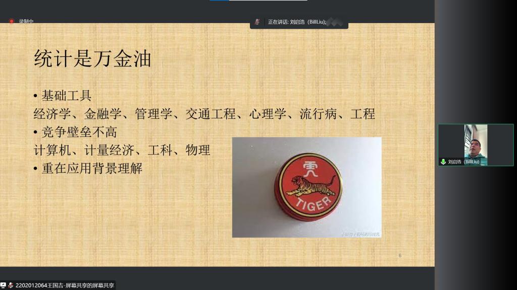 指出统计学科是万金油,在当前时代背景下,统计学被运用的十分广泛,并且在动手实践层面上也有一定的要求。接下来,刘启浩博士给出了一些有助于统计学同学们就业的一些策略,指出学习方向不能太窄,要学的广泛。