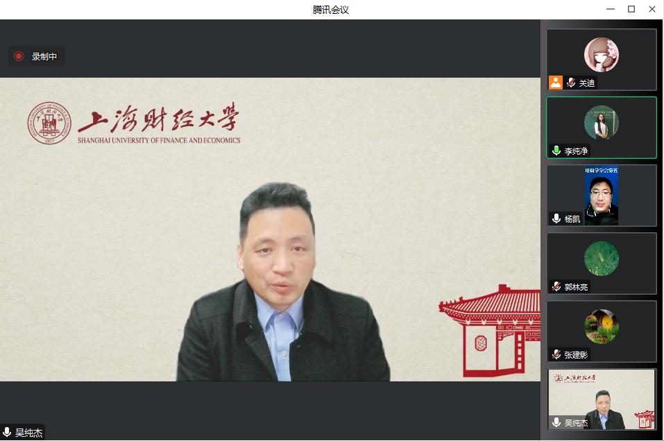 (通讯员:关迪)为了扩展学院的发展方向,提升学习精品课程以及课程建设的理论水平,2023年4月6日下午18:25,由科研处和澳门网投官方网站主办的报告在腾讯会议线上举行,特别邀请上海财经大学吴纯杰教授作为主讲人,基于吴教授本人的研究以及工作经历,为澳门网投官网师生进行讲解,我院共有190多名师生前来参会讨论与学习。我院澳门网投官方网站院长王纯杰、副院长李纯净等均参与会议讨论,会议由王纯杰院长主持。