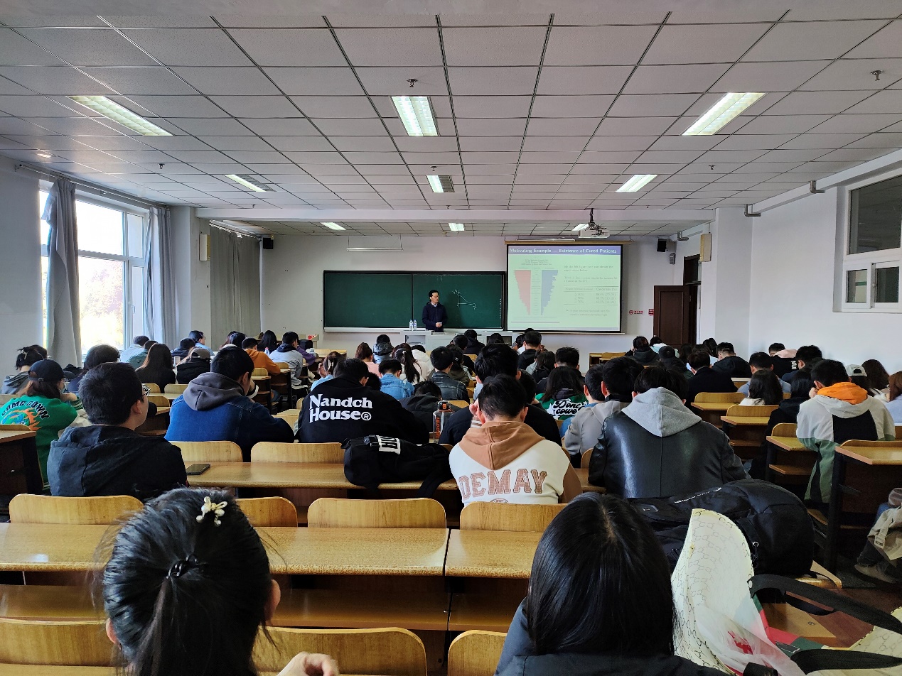 (通讯员:关迪)2023年4月23日上午9时在南湖校区教学科研楼307室,大连理工大学数学科学学院王晓光莅临我院做学术报告,学院部分老师、研究生参加了本次学术报告会,会议由学院统计系主任杨凯主持。