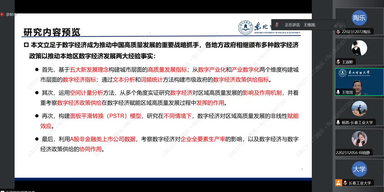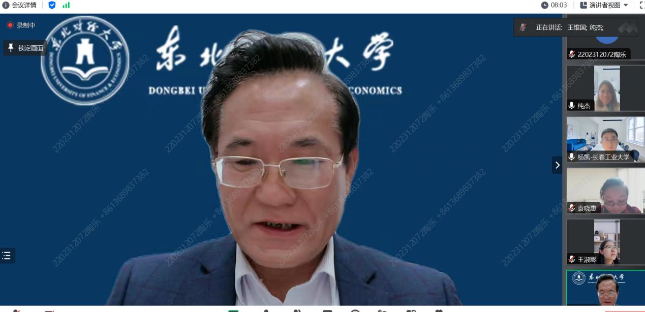 (通讯员:关迪)2023年11月6日下午19点30分,我院特邀东北财经大学经济学院王维国教授做线上学术报告,报告由澳门网投官方网站副院长杨凯副教授主持,学院院长王纯杰教授、学院副院长李纯净副教授、学院部分老师、全体研究生参加了本次线上学术报告会。