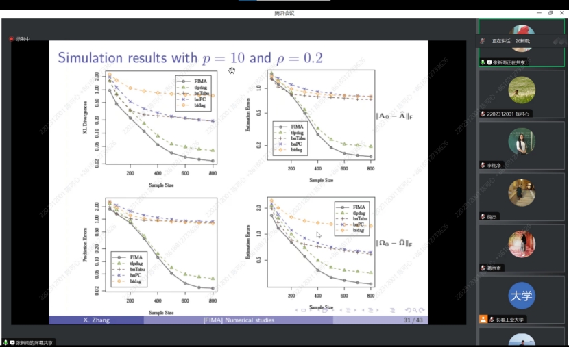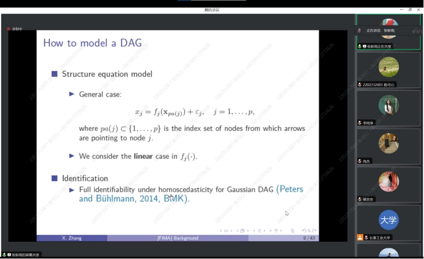 张新雨老师以往文献中信息技术的发展开始讲起,信息技术的进步使得网络数据在经济和金融领域日益频繁。为了估计金融网络,提出了一种有向无环高斯图的最优模型平均方法。对于一组随图结构而变化的候选模型,使用最小化负对数似然标准的权重来平均候选模型的估计,不仅建立了该方法的渐近最优性、权值收敛性和参数一致性,而且阐明了不同模型对收敛速度的影响,并证明了错误指定候选图模型下的参数一致性。仿真研究和对银行国际负债数据的实际分析结果表明了该方法的可行性。