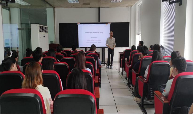 当没有对流出现时,流体在均匀重力的影响下是稳定的;当对流发生时,流体在均匀重力的影响下会产生Rayleigh-Taylor不稳定性。在报告中,潘荣华教授图文并茂、深入浅出地解释了Rayleigh-Taylor不稳定性,并对均匀重力下的无粘性/粘性流体、不可压缩/可压缩流体的Rayleigh-Taylor不稳定性等方面作了详细地阐述,进一步介绍了关于这些问题的已有成果和公开问题,分析了研究这些问题的关键技术和难点。