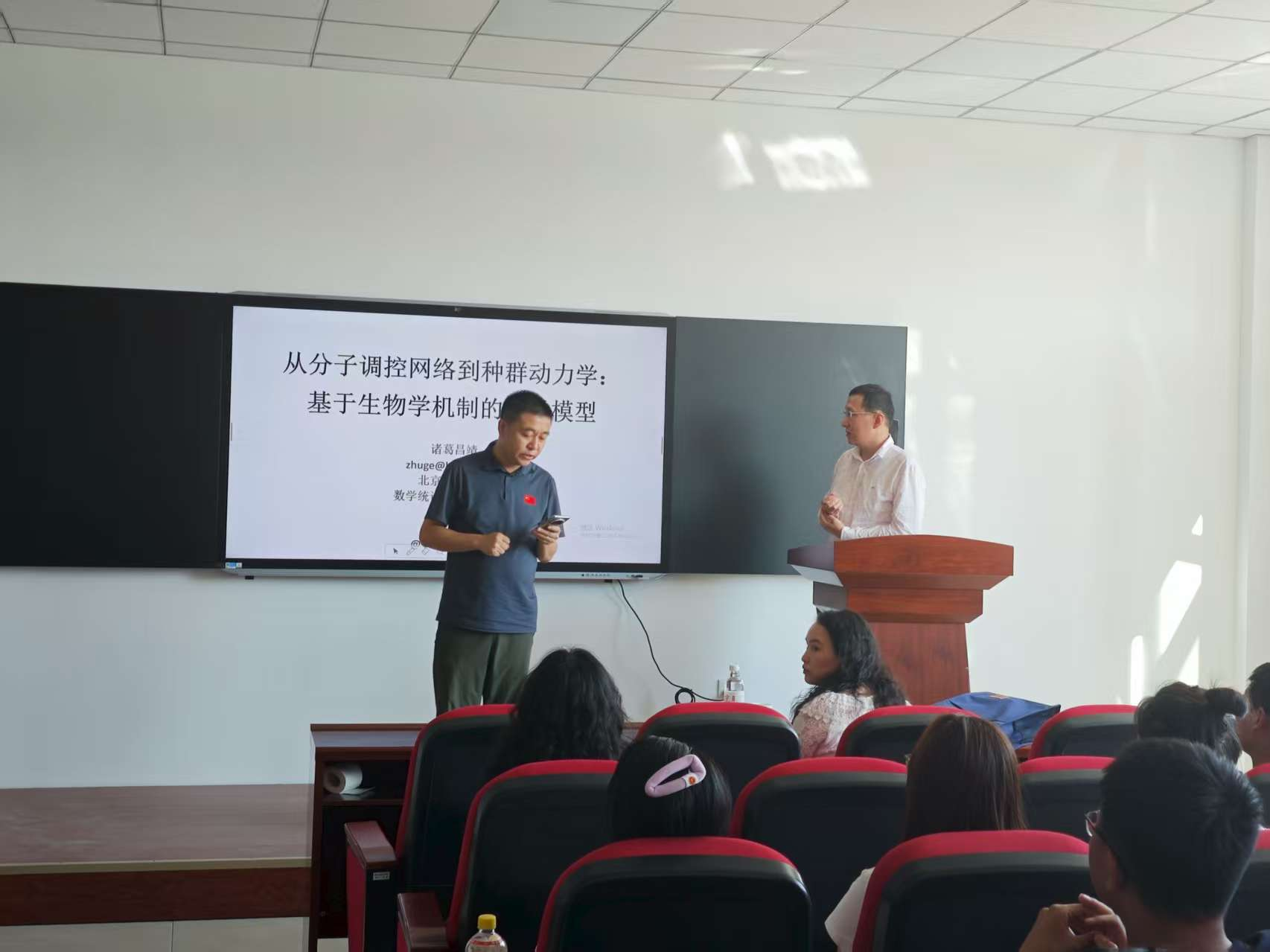诸葛老师的报告内容研究方向前沿,向大家充分展示了肿瘤治疗相关的动力学模型研究。报告会上,大家都表现出对于该研究方向浓厚的兴趣,报告现场十分融洽。会后,诸葛老师同大家展开了热烈的讨论,诸葛老师对于大家提出的与该报告会相关的方法问题做出了专业的解答和建议。此次报告会取得的效果斐然,极大的拓宽了学生们的科研视野,使大家充分了解报告会中内容及相关方向的发展前景。