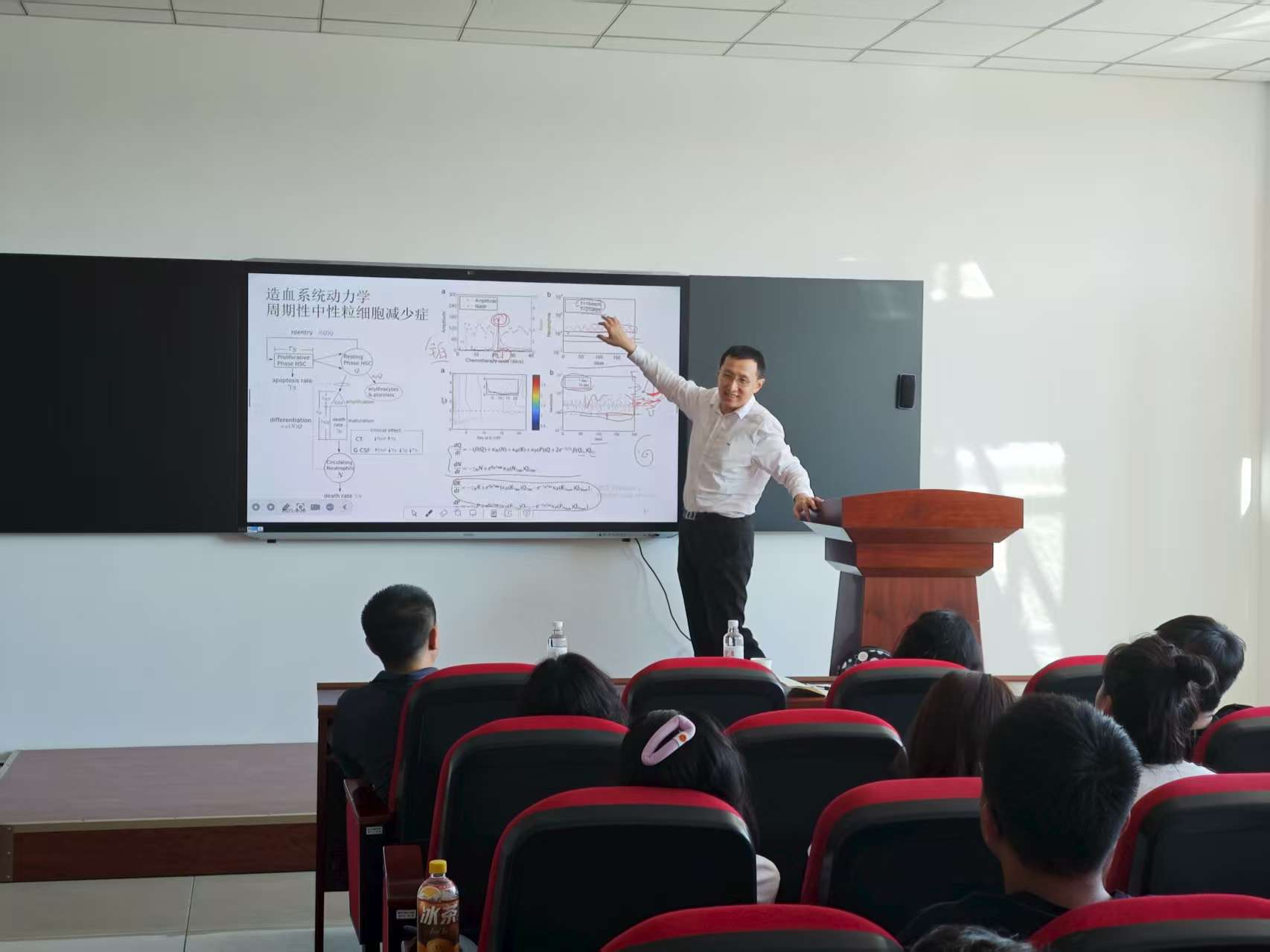 报告会中,诸葛老师深入探讨了不同尺度生命现象过程的数学建模、仿真与分析。他详细介绍了分子调控网络的研究,包括基因调控网络建模分析与动力学模型仿真。在血液与免疫学领域,他分析了造血干细胞动力学及骨髓抑制的最优控制。传染病动力学部分,诸葛老师阐述了传染病动力学建模及政策的中介效应评价,免疫衰退对流行病长期动力学行为的作用,以及免疫响应及流行病传播的多尺度数学模型。此外,诸葛老师还介绍了肿瘤的适应性治疗,通过数学模型探讨了适应性治疗是否为最佳治疗策略的问题,分析了在不同条件下适应性治疗的可行性和局限性。