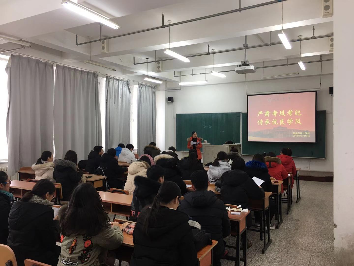 为严肃考风考纪,加强研究生的诚信教育,数学与与统计学院全体研究生于2018年12月13日,在林园校区教学图书楼705教室召开“严肃考风考纪 传承优良学风”研究生教育大会,会议由学院副处级专职组织员兼研究生辅导员应艳老师主持,全体研究生参加了会议。