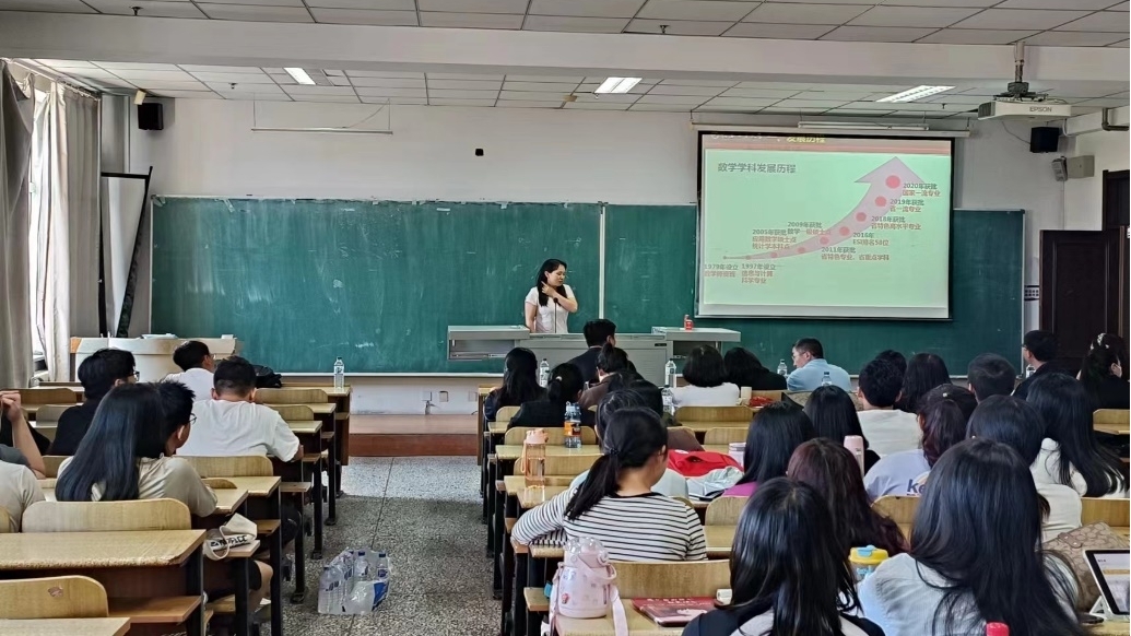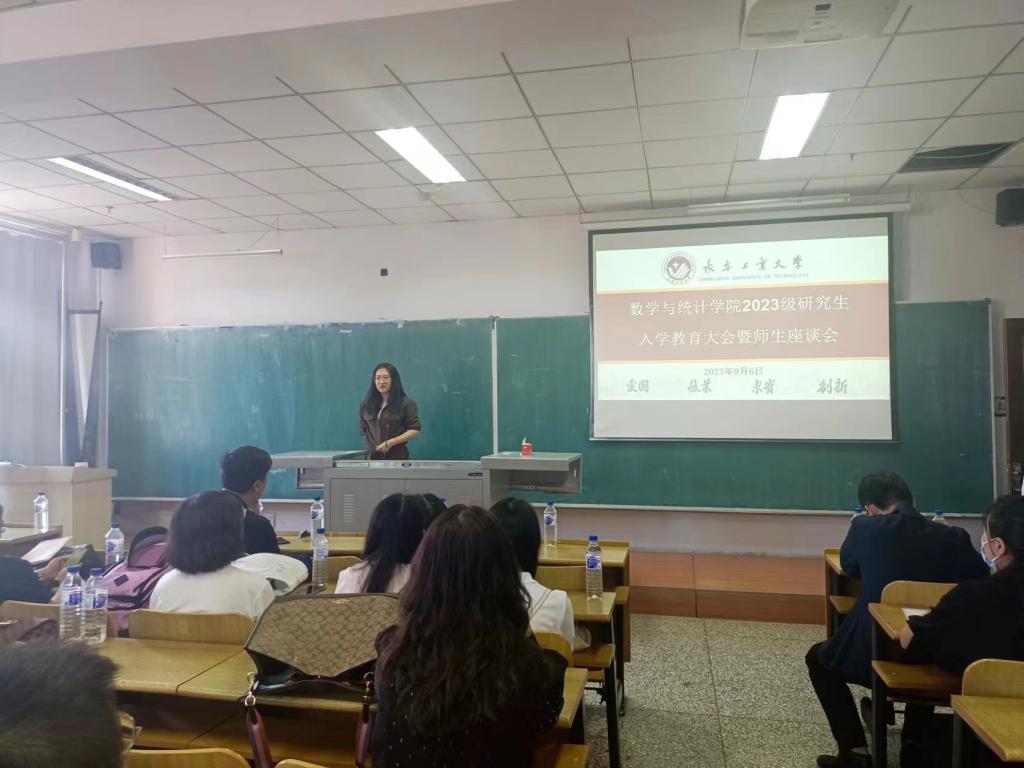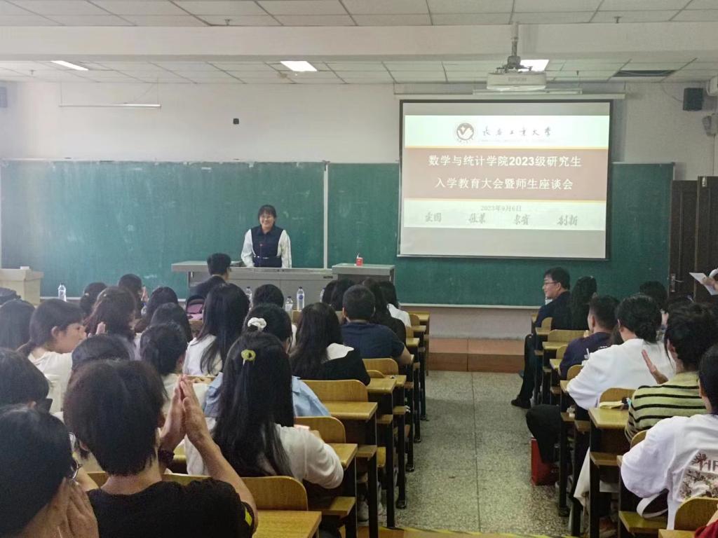 大会伊始,应艳老师介绍了出席本次大会的领导和老师,并对2023级全体研究生表示热烈欢迎。学院副院长兼统计系主任杨凯老师和数学系主任杜润梅老师就学院发展历程、师资队伍和学科概况进行了介绍,两位老师详细介绍了学院学科的研究方向以及在学术科研过程中需要注意的问题。