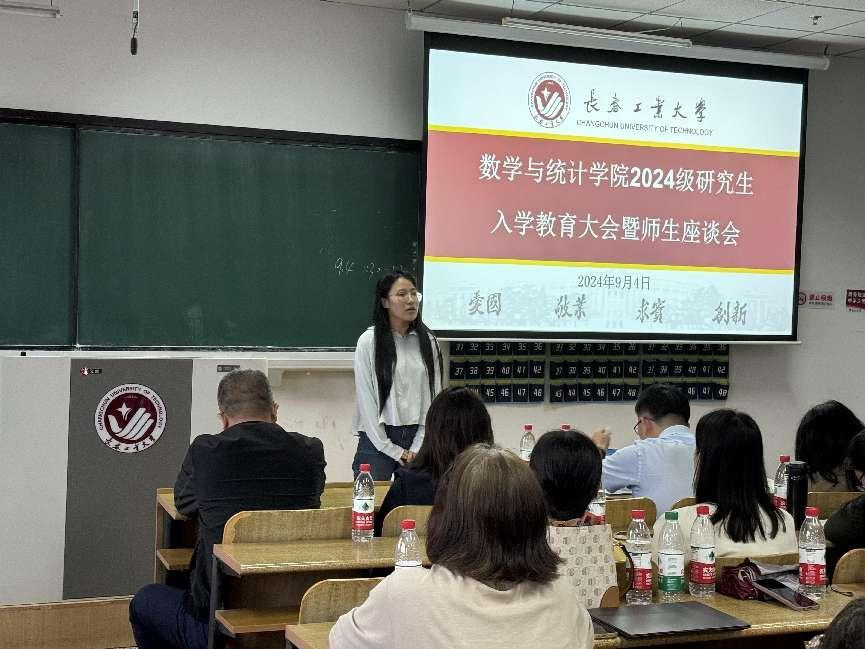大会伊始,应艳老师介绍了出席本次大会的领导和老师,并对2024级全体研究生表示热烈欢迎。大数据科学研究院副院长兼澳门网投官方网站统计系副主任王淑影老师和应用数学系副主任夏超老师就学院的学院简介、师资队伍、学科方向、发展历程、毕业生就业情况进行了详细介绍。