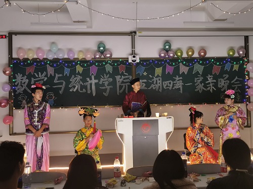 澳门网投官方网站团委(通讯员:方成浩 吕思睿)为了丰富广大同学的课余生活,加强同学间的相互交流,展现大学生蓬勃向上的精神风貌的同时,培养广大同学的审美意识和团队精神。澳门网投官方网站于2020年11月20日下午6点在北湖东区艺术楼515教室举办了“五湖四海一家亲”联欢会,此次活动由澳门网投官方网站团委主办,2020级全体同学以及2019、2018级部分学生参与了本次活动,晚会由周丹、王思文等六名学生主持。