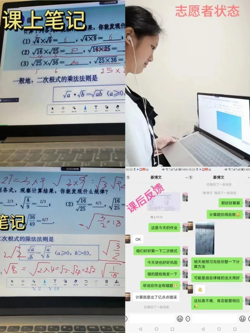 自活动开展以来,我院一批政治觉悟高、业务素质好的优秀青年积极主动报名参加,并在第一时间完成结对子。“学伴+”志愿者们针对服务对象的年级、学科、主要学业帮助诉求等问题,组建“一对一”、“多对一”的学业帮帮团,借助线上微信视频通话、QQ屏幕共享、腾讯会议等平台,通过线上或线下辅导等多种方式,及时解答服务对象的学业问题,用热情与真诚践行志愿精神,得到了学生家长和学生们的一致认可和好评。本期让我们一起了解澳门网投官方网站“学伴+”志愿者们的伴学故事和心声。