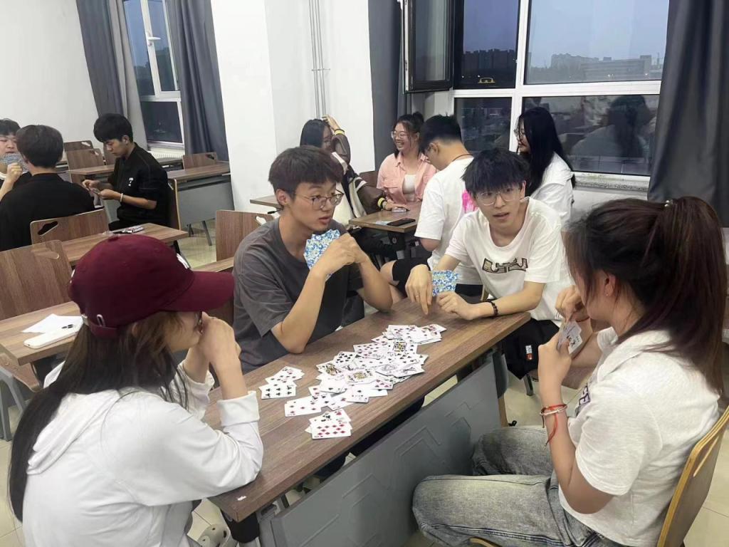 本次活动内容为:参加活动的同学们两两组队成一组,每两组进行三场掼蛋比赛,对门的为已方,构成一组,与另一组对抗。采用淘汰制的比赛方式得分高的组晋级,如场分相同,则比较其累计标准分,高者列前;如两对选手场分、标准分均相同,则先比较两对选手之间相遇时的胜负关系,胜者在前;直至赛出冠军。最终按照成绩排名取一、二、三等奖并颁发奖状。
