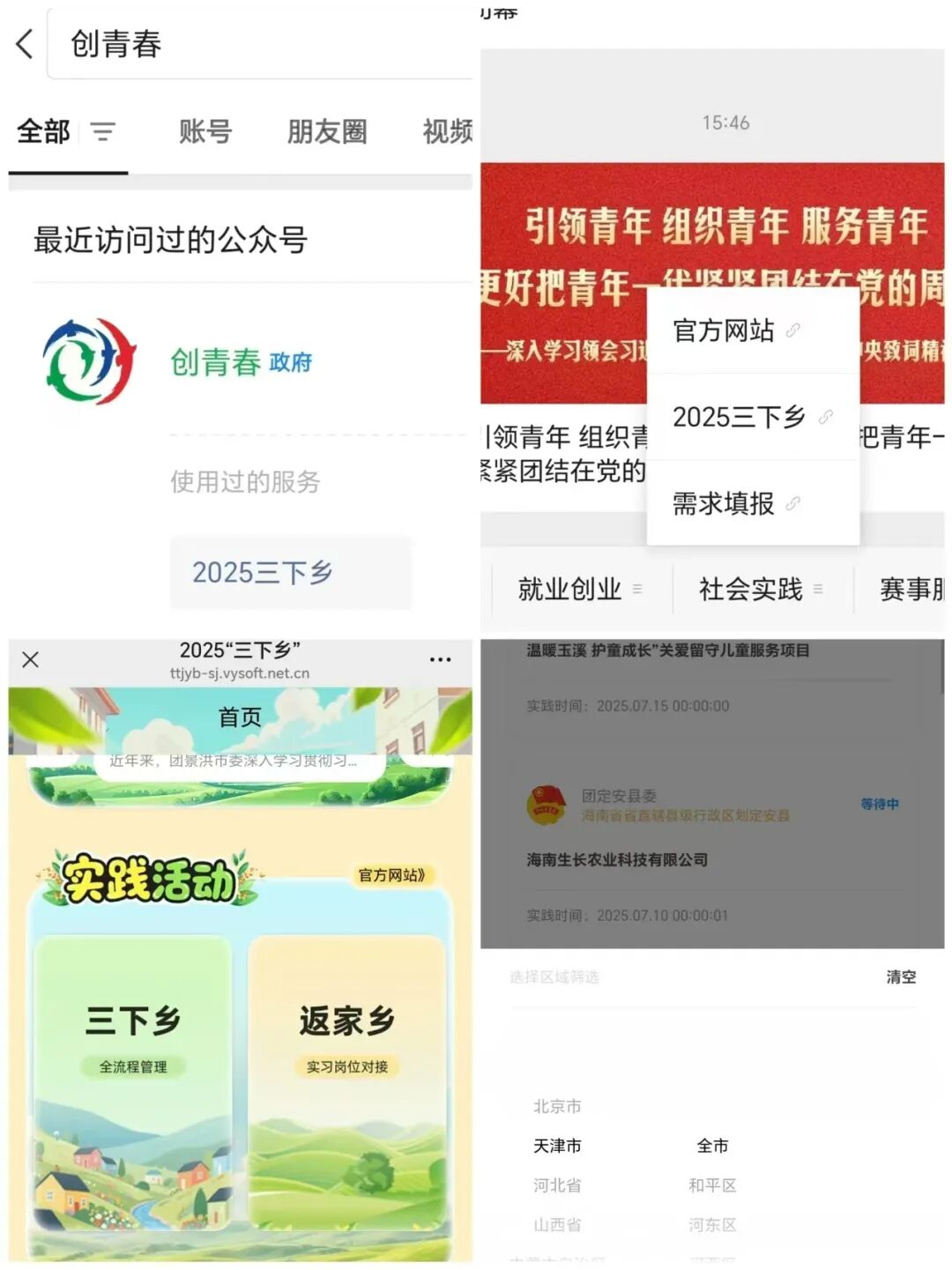 1.关注“创青春”公众号:选择“社会实践”—“报备入口”栏目