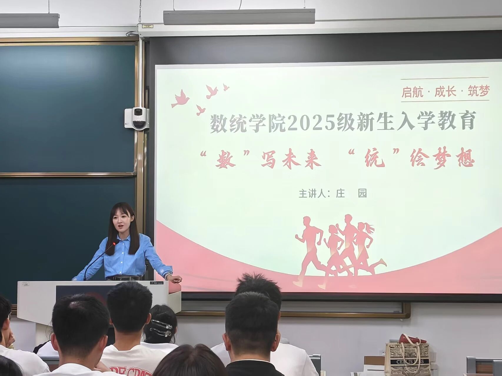 澳门网投官方网站团委讯(通讯员:赵子茉 李佳程)为了帮助2025级新生尽快适应大学生活、明确学业规划,澳门网投官方网站于9月8日晚在主楼232和240教室开展以“‘数’写未来,‘统’绘梦想”为主题的新生入学教育课。本次课程由学院团委书记、2025级本科辅导员庄园老师主讲,2025级全体新生参加。