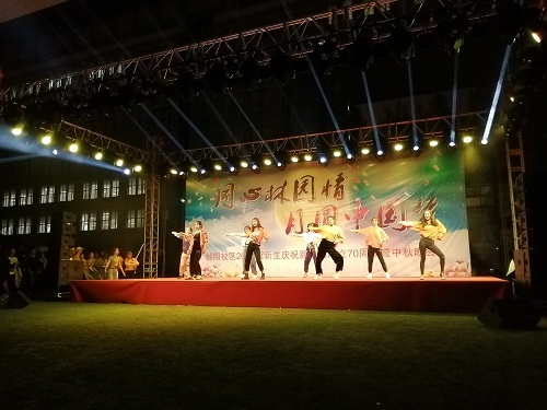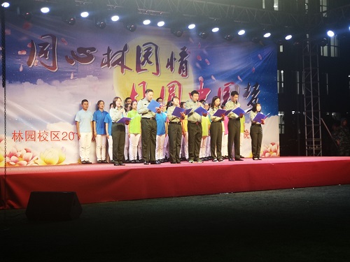 澳门网投官方网站团委讯(通讯员:张及佳 桂尚珂)林园校区全体师生在喜迎庆祝新中国成立70周年之际,正逢传统节日,中秋佳节,丰富军训期间大一新生的校园文化生活,充分给予2019级新同学们一个展现自我,施展才华的舞台,2019年9月13日晚七点,由澳门网投官方网站学生工作部、武装部主办,澳门网投官方网站协同经济管理学院、公共管理学院、外国语学院、艺术设计学院和信息传播工程学院五个学院,在林园校区体育场隆重地举行“同心林园情,月圆中国梦”——庆祝新中国成立70周年暨中秋晚会。校级领导,各学院领导,新生辅导员老师出席晚会,林园校区6个学院的1500余名的2019级新生热情洋溢地观看了本次晚会。