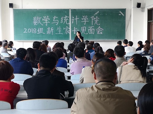 出席见面会的学院党政领导有院党委书记朱宏伟、院长王纯杰、党委副书记王丹、副院长张海燕。见面会由2018级新生辅导员老师郑岩主持,见面会上,由学院王纯杰院长为各位家长详细介绍了学院的发展情况,特别是我院的统计学一级学科博士学位授权点的申报建设与成功历程,在专业领域科研、自然科学基金申报情况以及在全省、全国级别的学术学科竞赛中学院取得的各项殊荣与成绩。学院骄人的教学与科研成果使得家长们对孩子在学校的学习更加放心与支持。王院长也表示学院的教育工作与学生的成长成才离不开学生父母的交流与沟通,家长的支持能够最大程度地鼓励孩子们的学习,对学院建设有序发展的学习环境与学习风气起到了重要的辅助作用。在家长咨询环节中,王院长和郑老师耐心细致的回答了家长们对于学生在生活、学习、考研和毕业去向等各方面的问题。