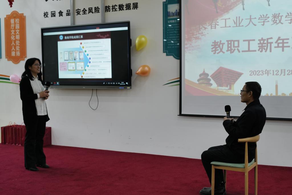 联欢会在学院过去五年成就展示短片中拉开帷幕,党委书记王丹、院长王纯杰先后发表新年贺词,他们向全体教职员工致以新年的问候,对大家一年来的辛苦付出表示衷心的感谢,对学院过去一年中在党建、学科建设、人才培养、科学研究、等方面发展取得的辉煌成绩表示祝贺,并纷纷献上新年的祝福。学院教工按照教研室为单位表演了精彩的文艺节目,有诗朗诵、有合唱、有情景剧,一时间掌声与欢笑生不绝于耳,游戏娱乐环节给联欢会增添了许多轻松和愉悦。