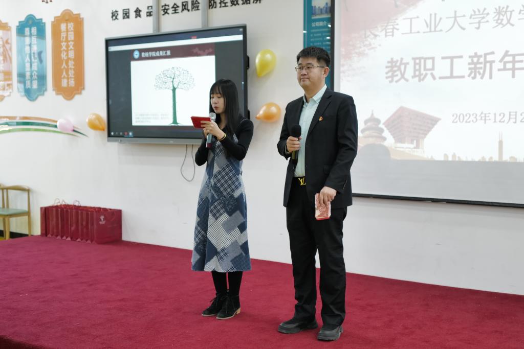 12月28日,澳门网投官方网站在南湖校区食堂隆重举办 “迎新年教职工联欢会”,学院全体教工齐聚一堂,共享欢乐时刻。联欢会由学院学生工作办公室辅导员白海洋;统计系教师蒋京京主持。
