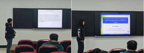 接下来的博士生论坛,共分为三个模块,分别为“复杂生存数据研究进展”、“现代机器学习方法进展”以及“复杂相依数据建模与推断”。东北师范大学王晴博士、吉林大学王淳博士以及我院林珊屹、赵一伟、李晶等博士研究生分别做学术报告,与参会教师和学生分享自己的科研成果,并和大家进行热烈的学术交流与讨论。