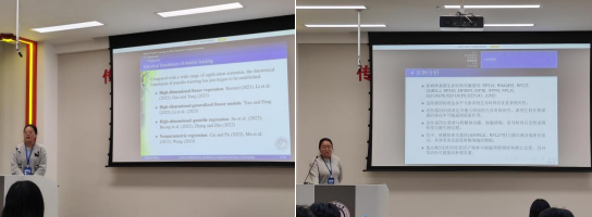 在论坛特邀报告中,唐炎林教授、郭旭教授和李长城教授以“现代统计理论与方法前沿”为主题,与大家分享最新学术成果和动态,冯龙教授、邓柯教授和李子林教授则围绕“数据科学与统计应用进展”做系列专题报告,特邀报告内容丰富,紧跟学术前沿动态,使得参会教师和学生受益良多。