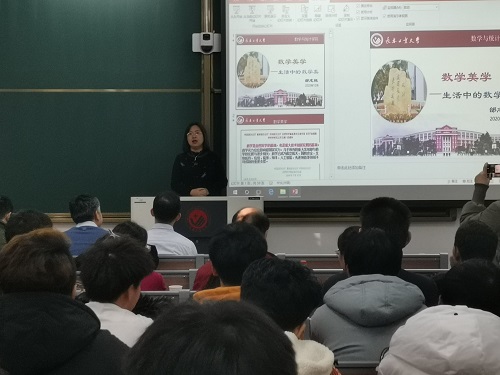 澳门网投官方网站团委讯(通讯员:柳笛 陈铭)为了让同学们深入领略数学之魅力,积极探索数学的奥秘,澳门网投官方网站邰志艳教授于2020年12月16日10:10在北湖东区主楼220教室为我院师生作以“数学美学——生活中的数学之美”为内容的学术报告,出席本次报告会的有校教育处副处长杜鹃、校美育中心副主任山川、学院党委书记朱宏伟、院长王纯杰、副院长刘铭,教师代表白琪峰、张建影、黎海彤老师及2019级和2020级全体学生。
