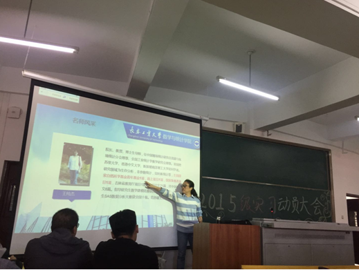 在学院发展发面,会上主要强调了学院自1979年的数学师资班发展至今已具有雄厚的师资力量和学院独特的专业风采,在统计学专业方向我们分别设有数理统计学、金融统计、风险管理与精算学、生物与医学统计学、大数据分析,在应用统计学专业方向我们相较于传统的统计学方向,另设有工业与社会统计方向,这些都是统计当前的热门方向。