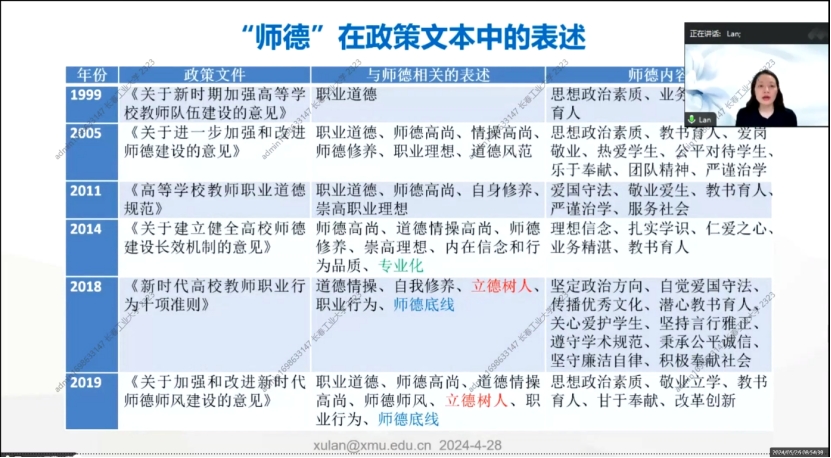 (通讯员:关迪)为贯彻落实习近平总书记关于研究生教育工作的重要指示精神,落实研究生导师立德树人根本任务,提升研究生导师教书育人能力素质,切实保障澳门网投官网研究生培养质量,促进学校研究生教育事业高质量发展。根据《教育部关于全面落实研究生导师立德树人职责的意见》(教研〔20181号)、《澳门网投官方网站研究生指导教师培训管理办法》(研字〔20227号)等文件精神,澳门网投官方网站于2024526日上午830分,第三期培训班在线上如期举行,学院副院长杨凯副教授主持会议,学院全体研究生指导教师参加了本次培训。本次培训由厦门大学徐岚老师讲述导师指导过程与师生关系如何影响研究生培养质量。