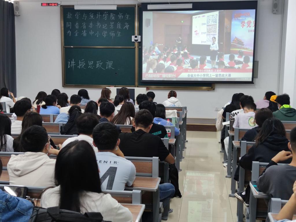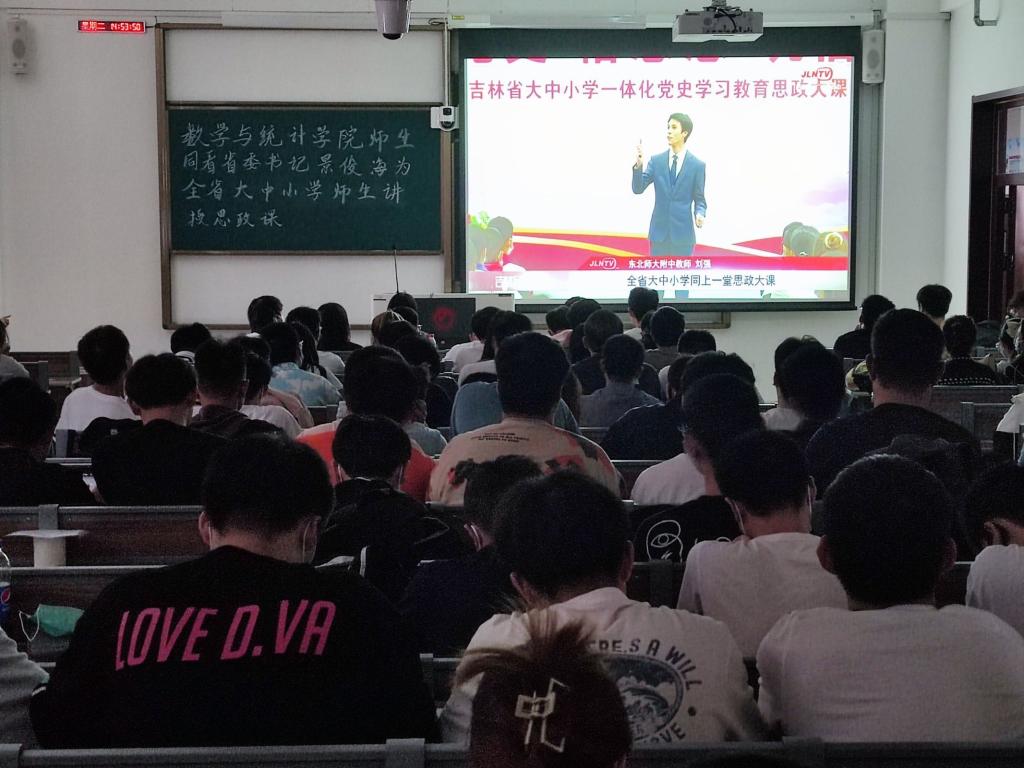 澳门网投官方网站团委讯(团委讯:邹强 方成浩)为深入贯彻习近平总书记“七一”重要讲话精神和视察吉林重要讲话重要指示精神。9月14日,省委书记景俊海以“学党史、悟思想、筑信仰”为主题,为全省大中小师生讲授思政课。澳门网投官方网站于2021年9月14日组织全院600余名师生分别在北湖东区主楼232、主楼116、艺术楼515三间教室集中观看方式和个人手机端观看方式参加了此次线上直播思政课的学习。