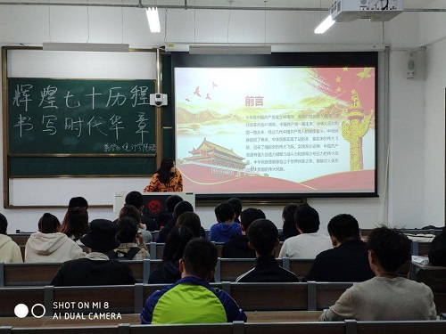 澳门网投官方网站团委讯(通讯员:高帅帅)为了庆祝中华人民共和国成立70周年,深刻学习习近平总书记在中华人民共和国成立70周年庆祝大会上的重要讲话精神。澳门网投官方网站于2019年10月23日下午在主楼446教室开展了“学习筑梦”系列活动之“辉煌七十历程,书写时代华章”主题团会。本次活动由180802班团支书张宁馨主持,大一、大二全体团支部委员参加本次活动。