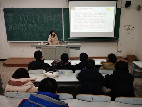 会上,林思扬带领同学们学习了中国共产党第十九次全国代表大会上习近平总书记首次提出的“新时代中国特色社会主义思想”,并为同学们详细讲解了习近平新时代中国特色社会主义思想的基本内容及重要意义,习近平新时代中国特色社会主义思想是马克思主义中国化最新成果,是党和人民实践经验和集体智慧的结晶,是中国特色社会主义理论体系的重要组成部分,是全党全国人民为实现中华民族伟大复兴而奋斗的行动指南。林思扬表示,希望同学们不忘初心、牢记使命,保质保量地完成学习任务,提升自身修养、端正态度、艰苦奋斗,努力成为新一代共产党的接班人。