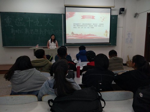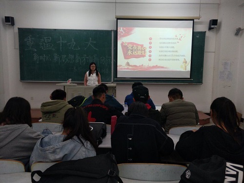 澳门网投官方网站团委讯(通讯员:卢继迎 姚佳红)为深入贯彻落实党的十九大精神,增强广大团员青年对习近平总书记的思想认同和情感认同,更加自觉地在思想上、政治上、行动上与党中央保持高度一致,澳门网投官方网站团委于2018年10月18日在教图楼201教室开展“学习筑梦”系列活动之“重温十九大之新时代新思想新矛盾新目标”。学院2018级主要学生团干部参加本次会议,团委副书记崔仕贤担任会议主讲人。